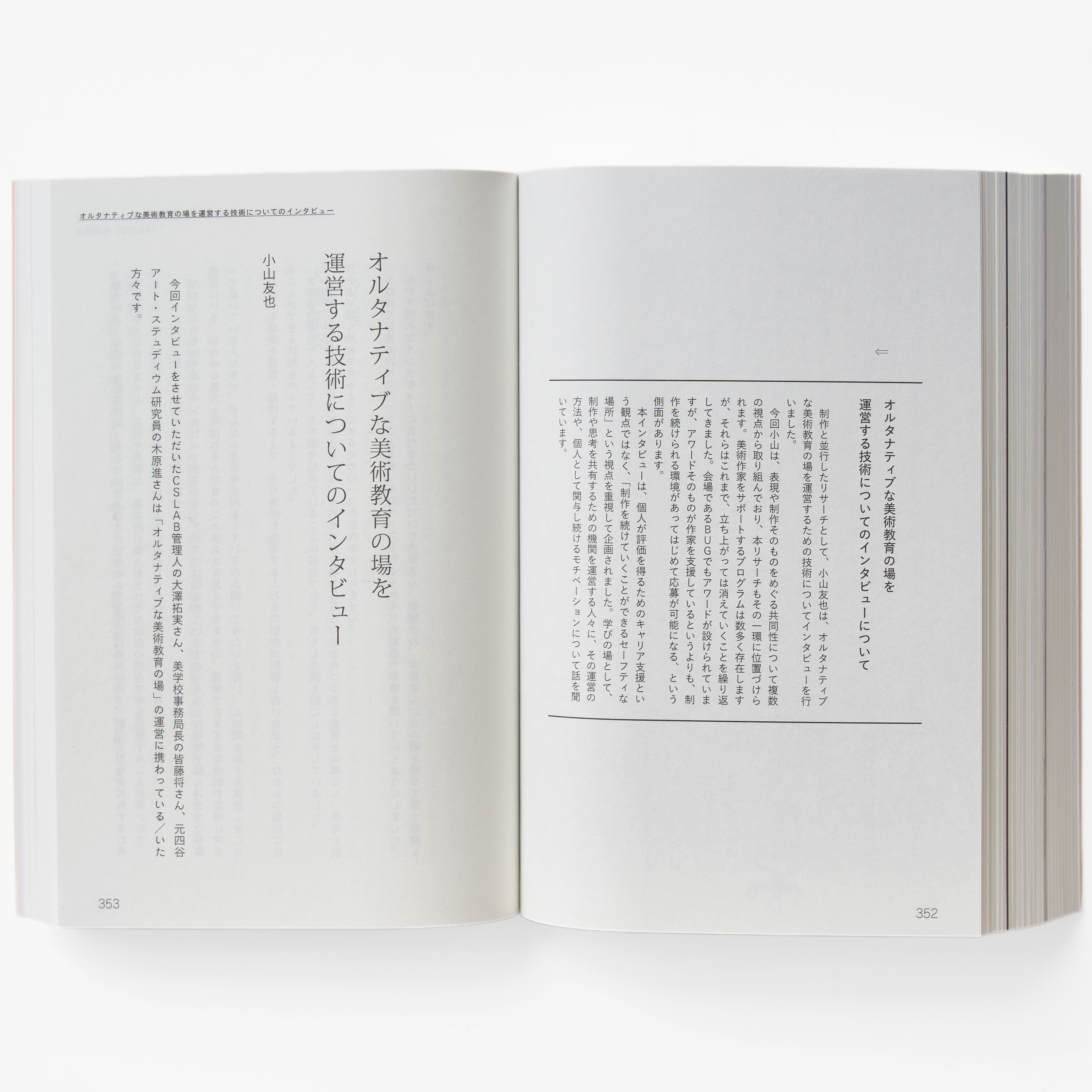 実験的な展覧会の関連書籍。作品解説、批評家による展覧会評のほか、イベント、ワークショップなど多岐に渡る活動全体の記録や対談、アーティストらの日記、エッセイ、小山友也による「オルタナティブな美術教育の現場インタビュー」を収録。