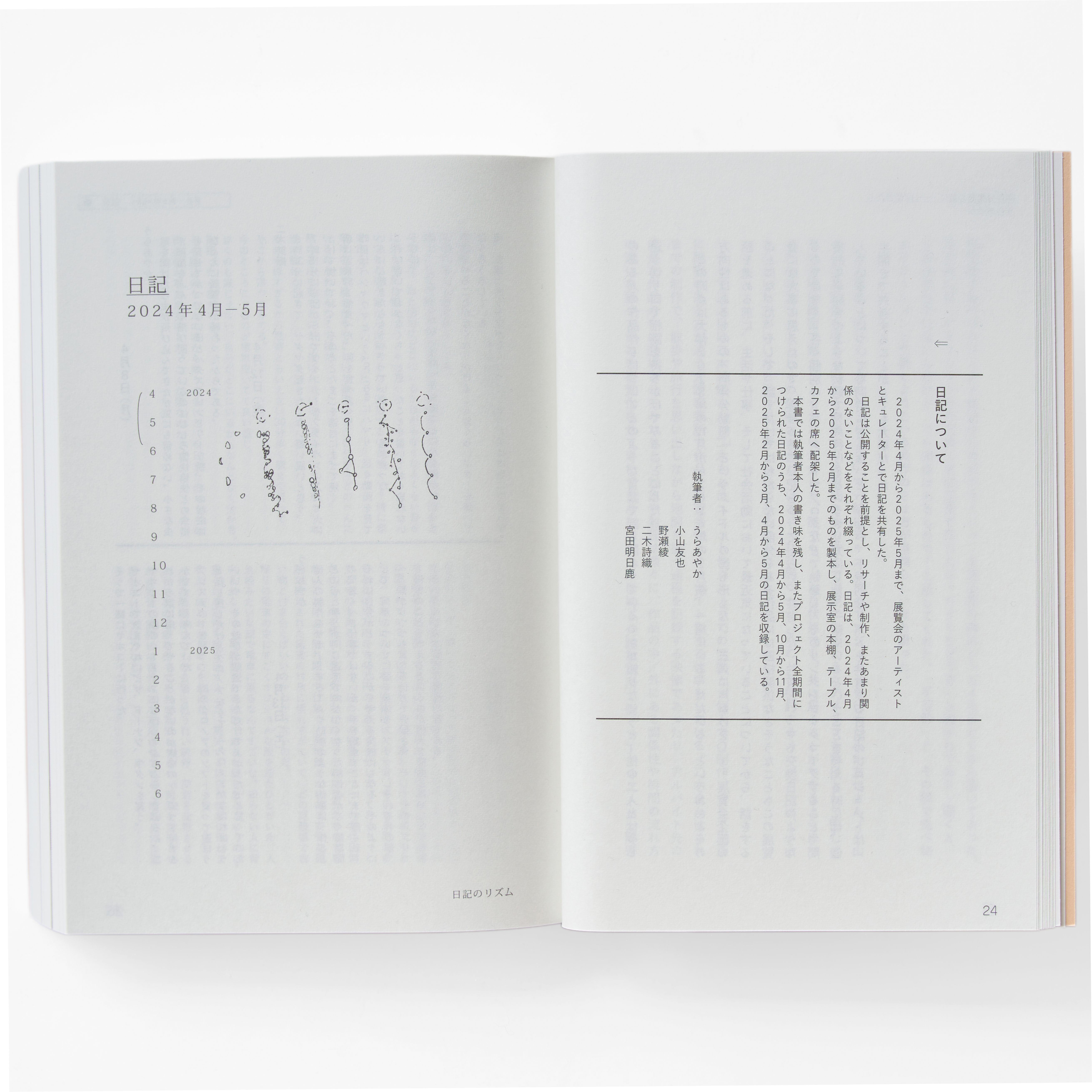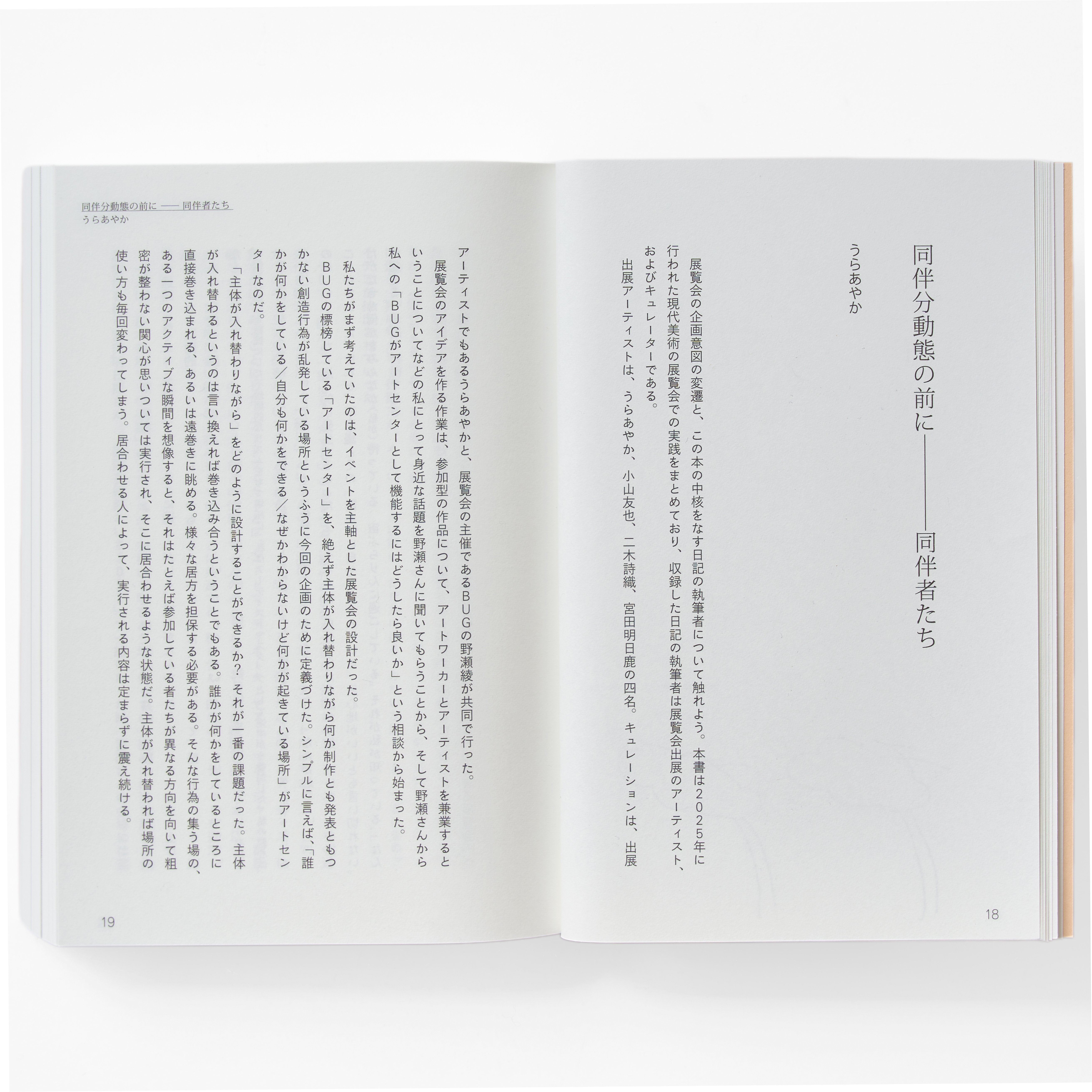 Published in conjunction with an experimental exhibition by four artists, held in 2025 at BUG, an art center in Tokyo operated by Recruit Holdings Co., Ltd., this volume brings together not only artwork texts and a critical essay on the exhibition, but also an extensive record of the project as a whole. The book includes documentation of events and workshops, conversations, artists’ diaries and essays, as well as Yuya Koyama’s project, “Interviews from the Field of Alternative Art Education.”